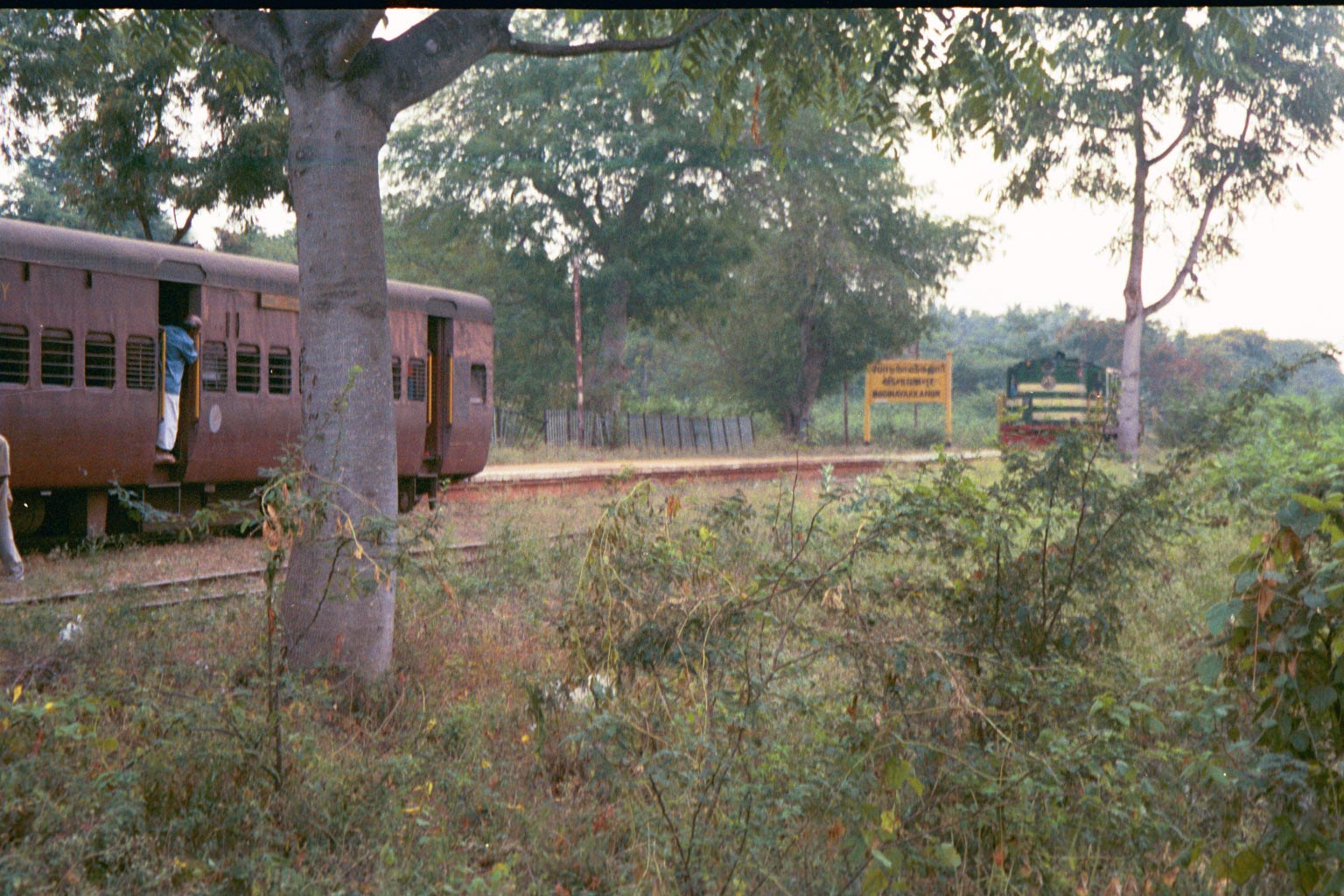 The YDM-4 returns to pole position, now at the other end towards Madurai Jn. I was answering nature's call when I snapped this! Did not have the freedom to wait till the loco came in closer. Bodinayakkanur, 2004-01-03. By Ranganath Eunny.