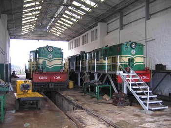 A peep inside the shed. YDM 4's 6545 and 6168 gets attended to. The pit lanes are suitable for WDM 2's too