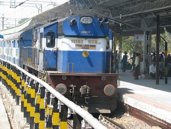 KJM WDG-3A #14636 brings in the 525SW Marikuppam-Bangalore passenger which brought us back to Bangalore from Byatarahalli. 2009-02-07. (Pawan Koppa)