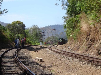 The magnificent setting of Aryankavu station. The lamp post at right is 180 m from the SM's office and serves as a visibility range marker during rain and fog.