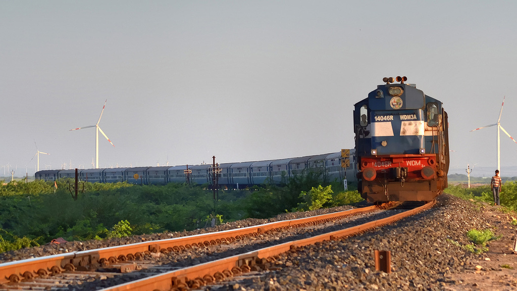 It is time to greet this marathon runner, Gandhidham - Nagercoil Express powered by WDM-3A #14046R curving in to take on the Hadakiya Creek bridge across LRK. The train was already late by about 25 mins. (Naveen)