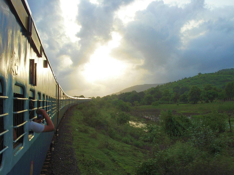 0104 Mandovi express takes a nice sunbath somewhere after Roha. (Apoorva Karlekar)