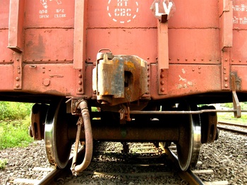 Central buffer coupling of BCNA rake , look at the LV board, the rake is terminated without a caboose . (Ashwin Rao)