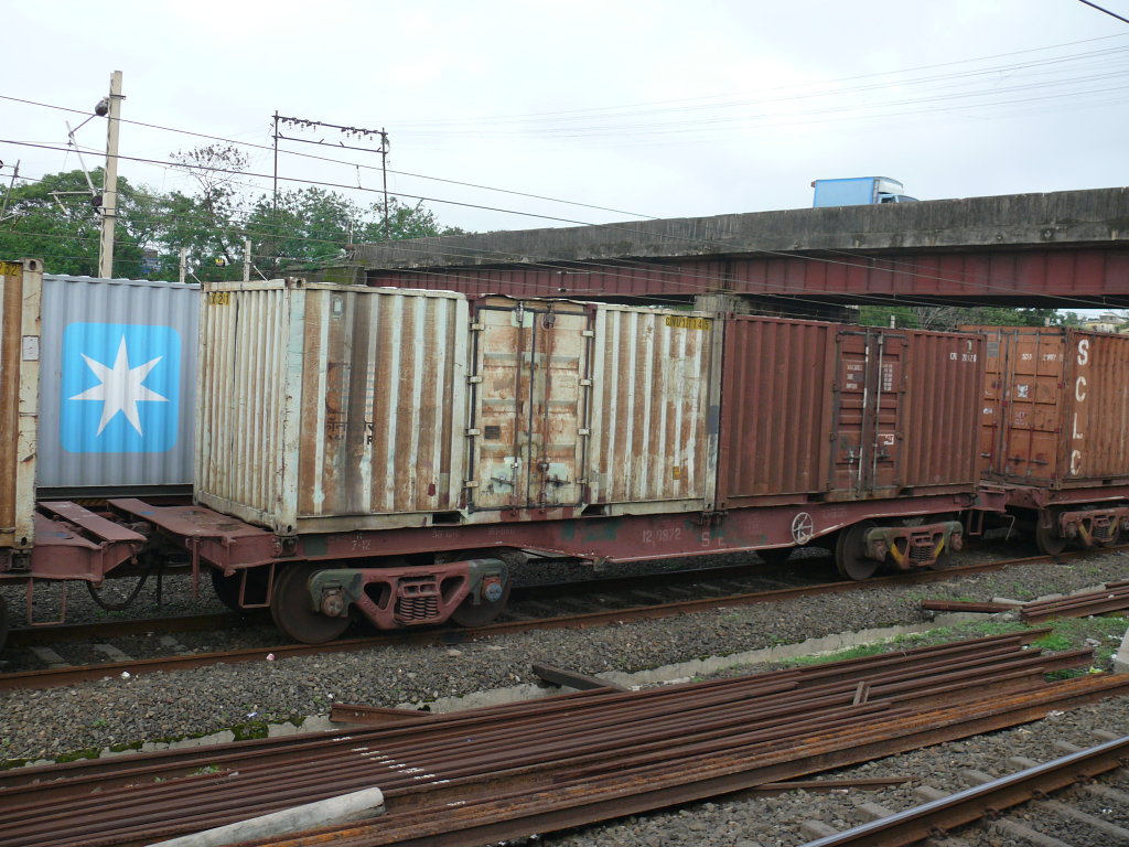 The predecessor of the current day container wagons.. This is a BFKHN flat wagon. These are fitted with CASNUB bogies and are individual units, unlike BLCA/BLCB wagons, which run as a consist of five wagons (three BLCBs and two BLCAs) ()