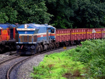 GY WDG-4 12317 waits with empty BOXN rake as Vasco-da-Gama Express moves to Dudhsagar station. (Jayasankar Madhavadas)