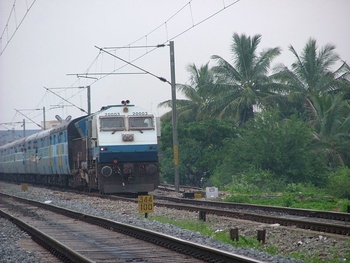 The Beast: WDP-4 #20003 hauls in SC-SBC Express with turbines whirring...a video of this is up at the videos page. BYPL. By Naren Damodaran.