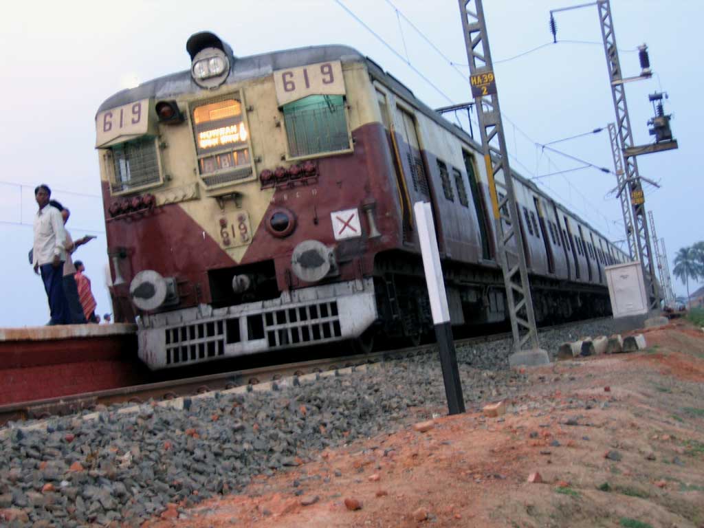 The EMU, still at Amta station, awaiting departure for Howrah.