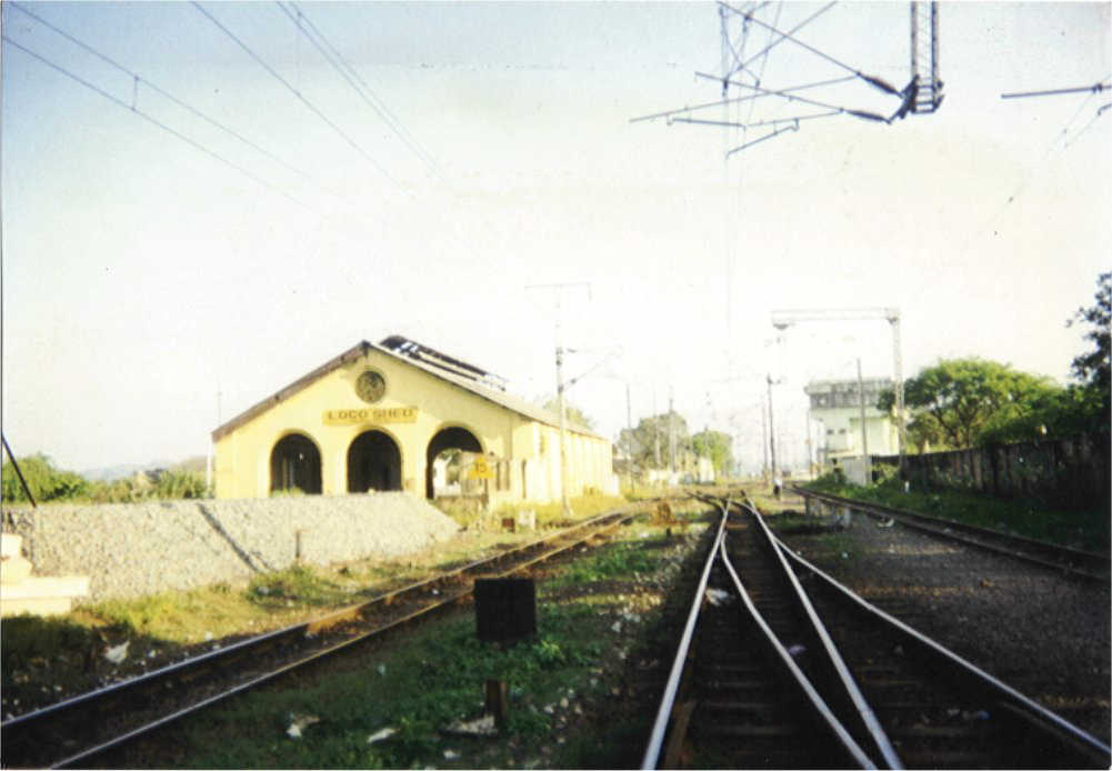 The old and forgotten structure on the left is Chengalpattu (CGL) steam loco shed, that was once home to the beautiful YPs and YGs that romped over these tracks. Chengalpattu lies south of Chennai Egmore, and forms a junction to serve Kanchipuram and Arrakkonam. This pic is dated late November '97. A BG track now winds its way to this station, and this route has the distinction of being the only MG electrified track in India. |