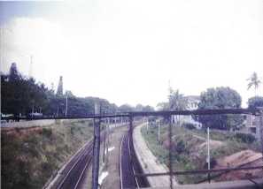 Platform #1 of Basin Bridge Junction - the station right after Chennai Central Terminus. This line splits thrice up north to move to Arrakkonam, Gudur and Chennai Beach. You could view blown out smoke-stacks of the Chennai thermal power station to the right in the late 1980's, now they're being completely rebuilt. |