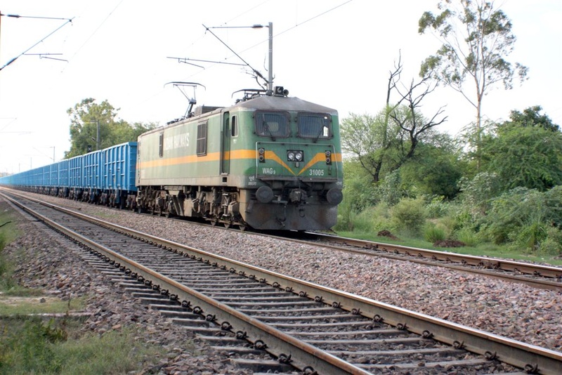I walked past the curve, going towards the SNP end, crossing a sozzled man searching for ‘dhatura’ fruit in the bushes for his next high. From SNP end, came a nice long consist of sky blue freight wagons, hauled by a GMO 31105 WAG9 in a green and yellow stripe livery.